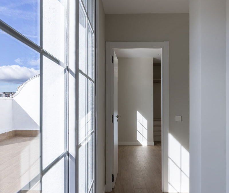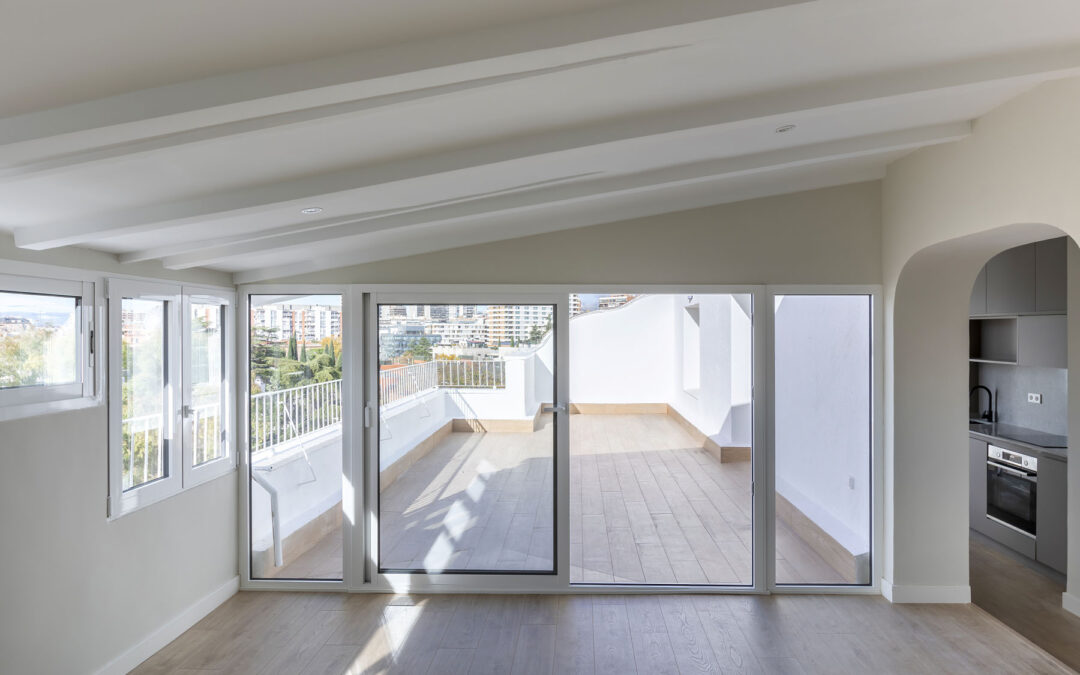 El proyecto destaca por la incorporación de grandes ventanales de suelo a techo que permiten la entrada de luz natural, favoreciendo la eficiencia energética y reduciendo la dependencia de iluminación artificial. El interior del ático refleja un equilibrio perfecto entre líneas modernas y materiales cuidadosamente seleccionados por su sostenibilidad. Cada detalle ha sido pensado para maximizar el confort, desde la distribución funcional hasta los acabados de alta calidad.